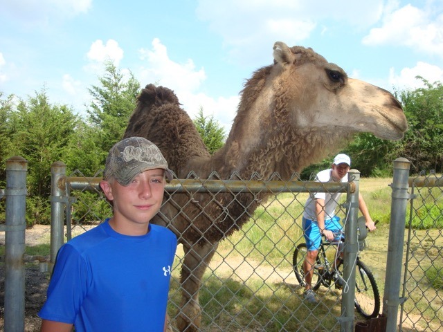 Another summer highlight was serving as a counselor at Teen Camp. My son, Ethan, also served there as camp nurse. On one of his additional duties as bicycle patrolman during free time, he helped this scared teen safely to the other side of the fence from the camel! I truly loved my cabin of teen girls and keep them in my prayers.