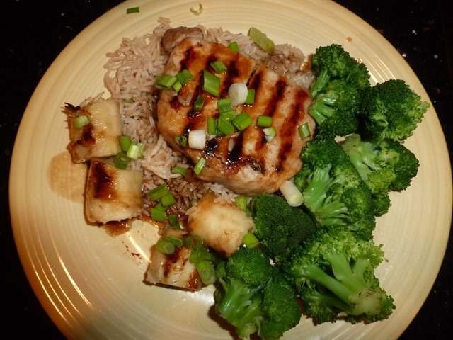 My favorite new Pinterest recipe: Grilled Teriyaki Pork Chops and Bananas!!