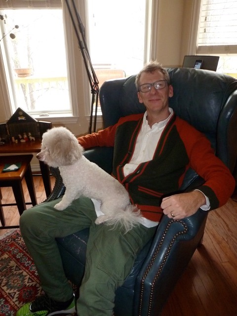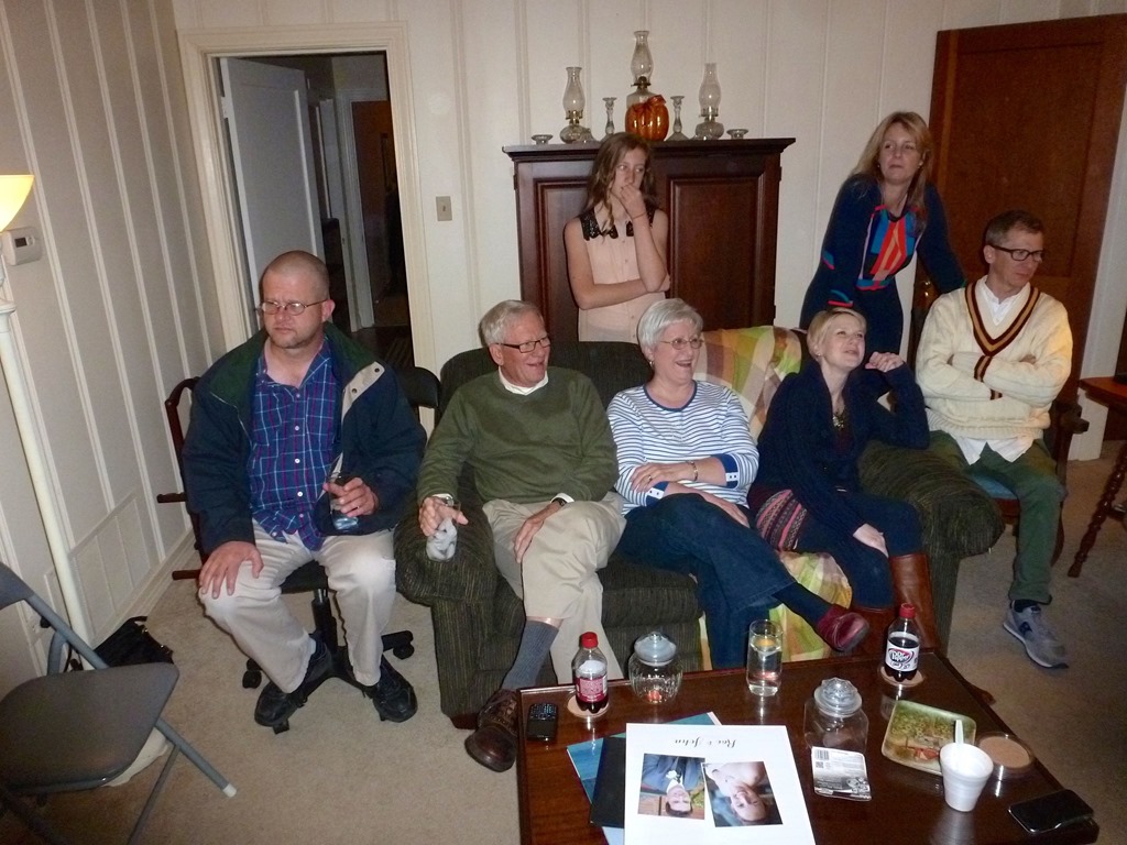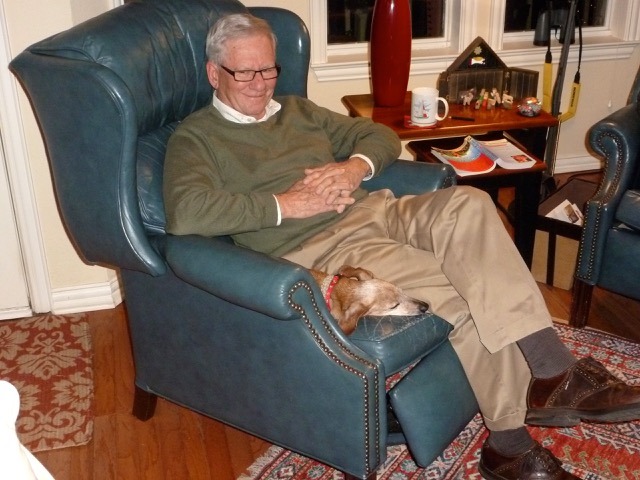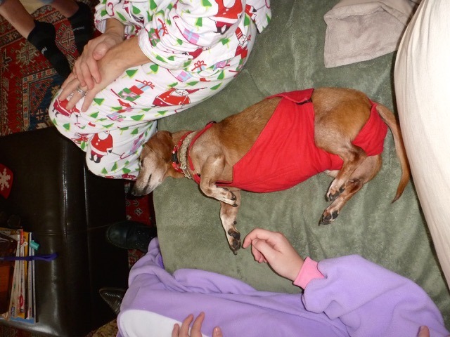 The family dogs had no trouble finding someone willing to snuggle with them. Timmy spent a little time with Daddy, and Penelope found a nice spot with Tim for a short while.