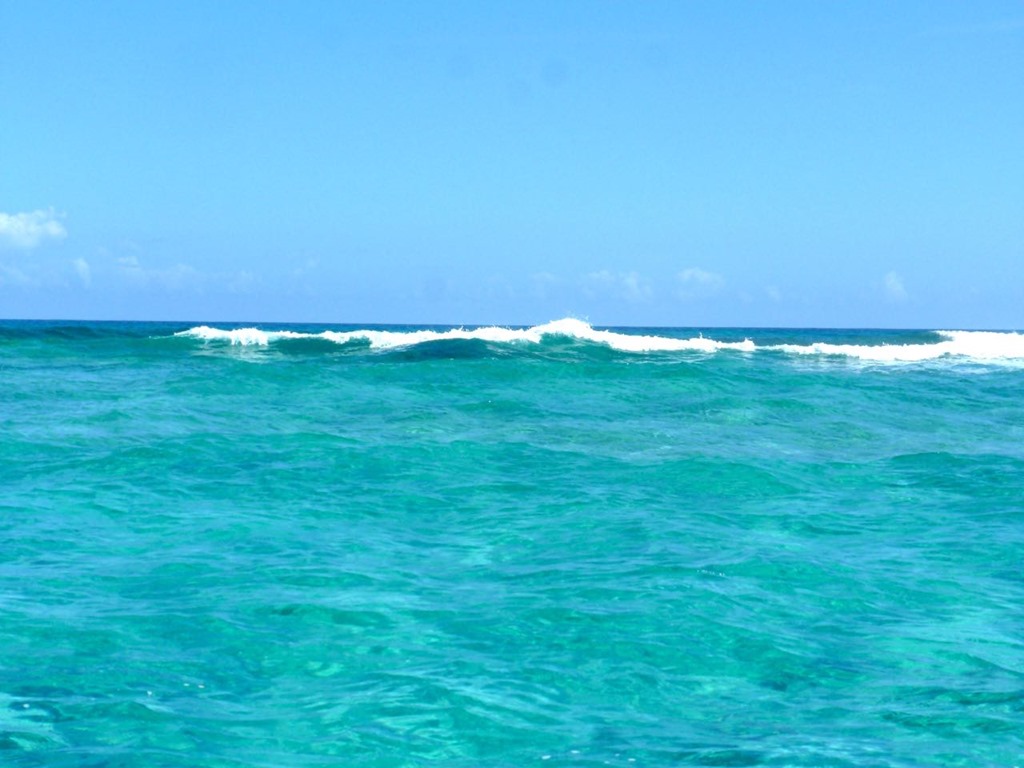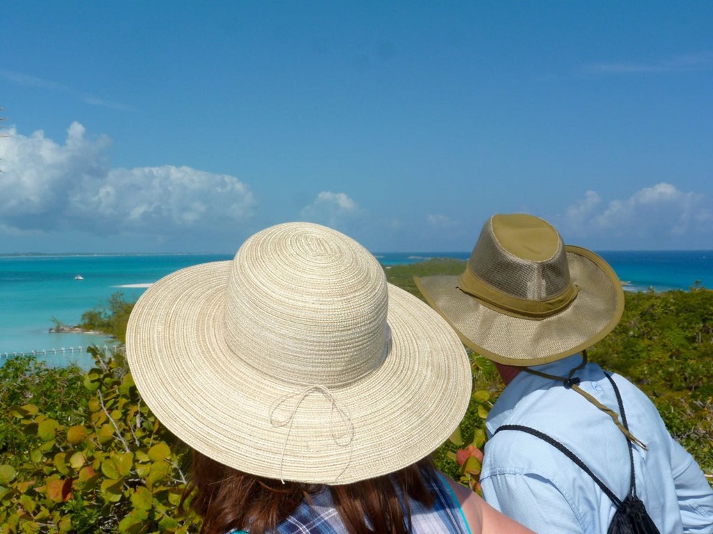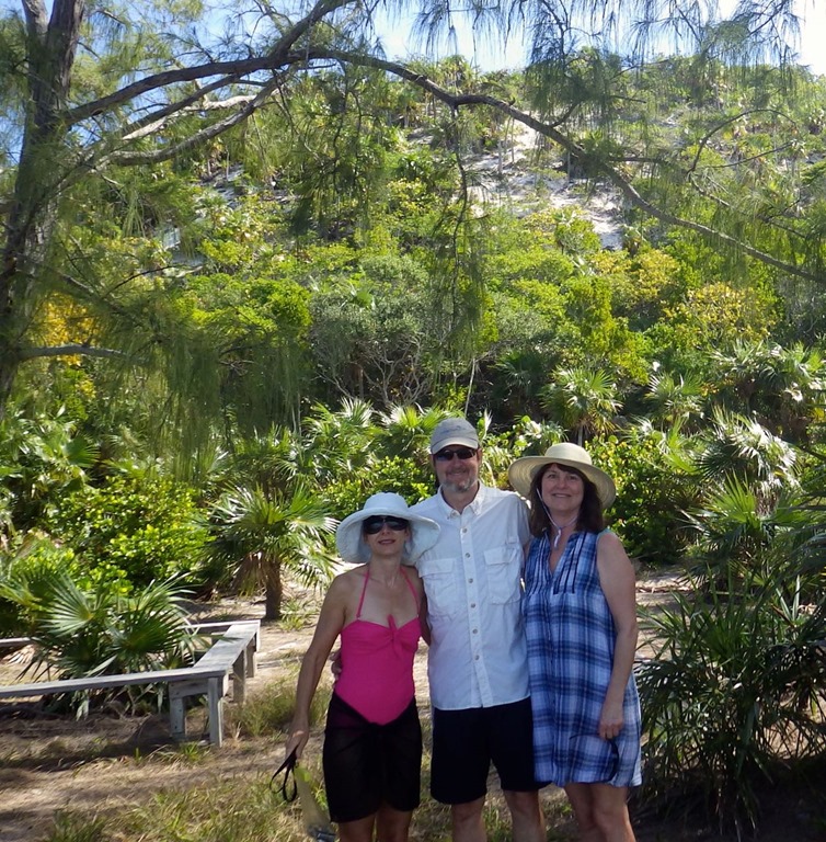and then took a short dinghy ride across a lagoon and short hike over the hill to the ocean side of Stocking Island.  It’s very different from the tranquil harbor side with its gently lapping waters on the Casuarina Pines-shaded beach.   In contrast, the ocean side offers a vista of crashing waves and pinkish-white beach as far as you can see.