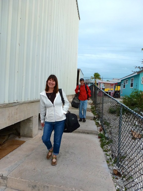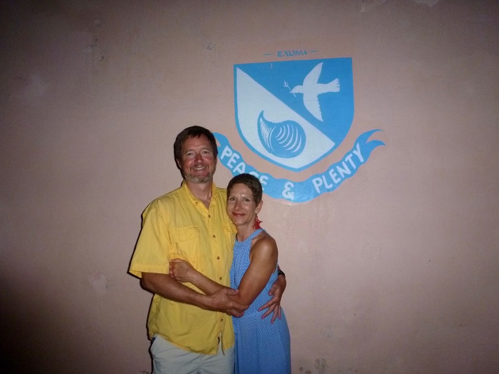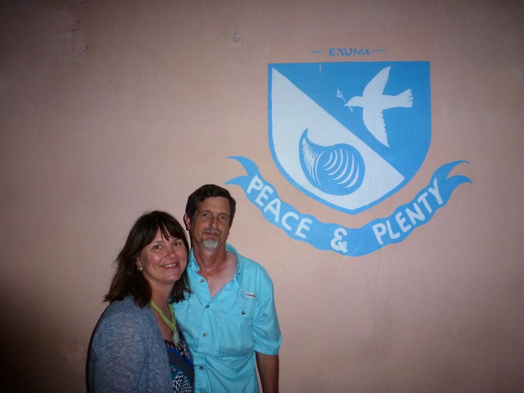 On the last morning of Alan and Judy’s “Nancy Lu-Vacation” we regretfully announced their upcoming departure on the 8:00 “net”.  While Alan and Judy gathered all of their stuff,  I stripped our bed and gathered laundry to do in town after we saw Alan and Judy off.  When we got into town, we did a little bit of last minute souvenir shopping and enjoyed  scrumptious hamburgers at Exuma Yacht Club!  We experienced a little bit of “island-time” which was a bit concerning since they had a taxi to catch, but it worked out perfectly.   We had a really nice last-visit on the deck of EYC!  We were sad to see our guests go, and we hope that they had as much fun with us as we did with them!