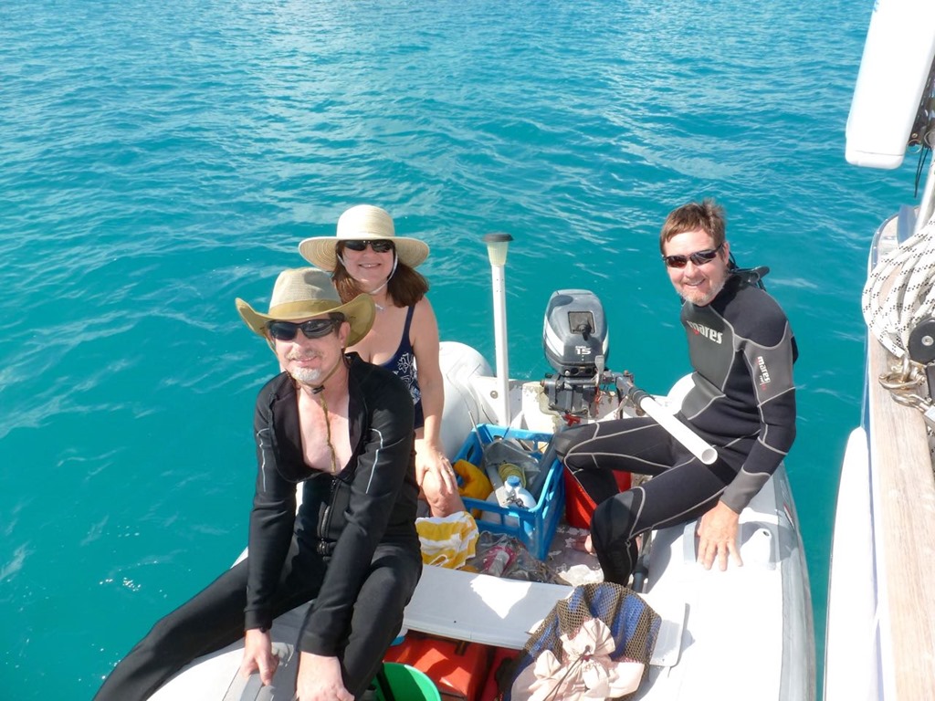 a helmet conch and a giant live sea biscuit.  We put all the live creatures back and kept the sand dollars.  Captain Mark dropped me off at Nancy Lu before he took Alan and Judy to do a little more snorkeling while I fixed lunch.  That afternoon since the harbor was nice and calm,