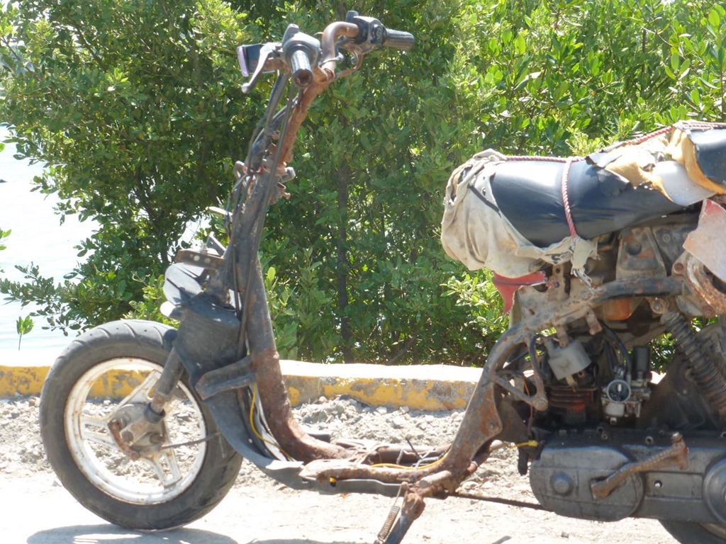 The next day, he went with Sandra Louise at 7:00 in the morning with the mission of meeting a man, Jose’, that Sandra Louise had met the day before so that Jose’ could take Mark up just a few blocks from the beach to fill 3 jerry jugs with fuel. Well, 1 jerry jug flew out of the back of the truck so he only got 2 filled, and the whole mission took half a day because Jose, a “Belonger”, took them with him on his work rounds for the morning. He’s a self-employed pool guy. A “Belonger” is a term for natives of Turks & Caicos or their descendants. 90% of Belongers are directly descended from survivors of an illegal ship carrying African slaves that sank in 1841. Since Slavery was abolished in England (Turk & Caicos is a British Territory) in 1834, they were free in this new land where they settled. Belonger is an honorable title—everyone else who lives here are just called “residents”. I missed all the excitement,