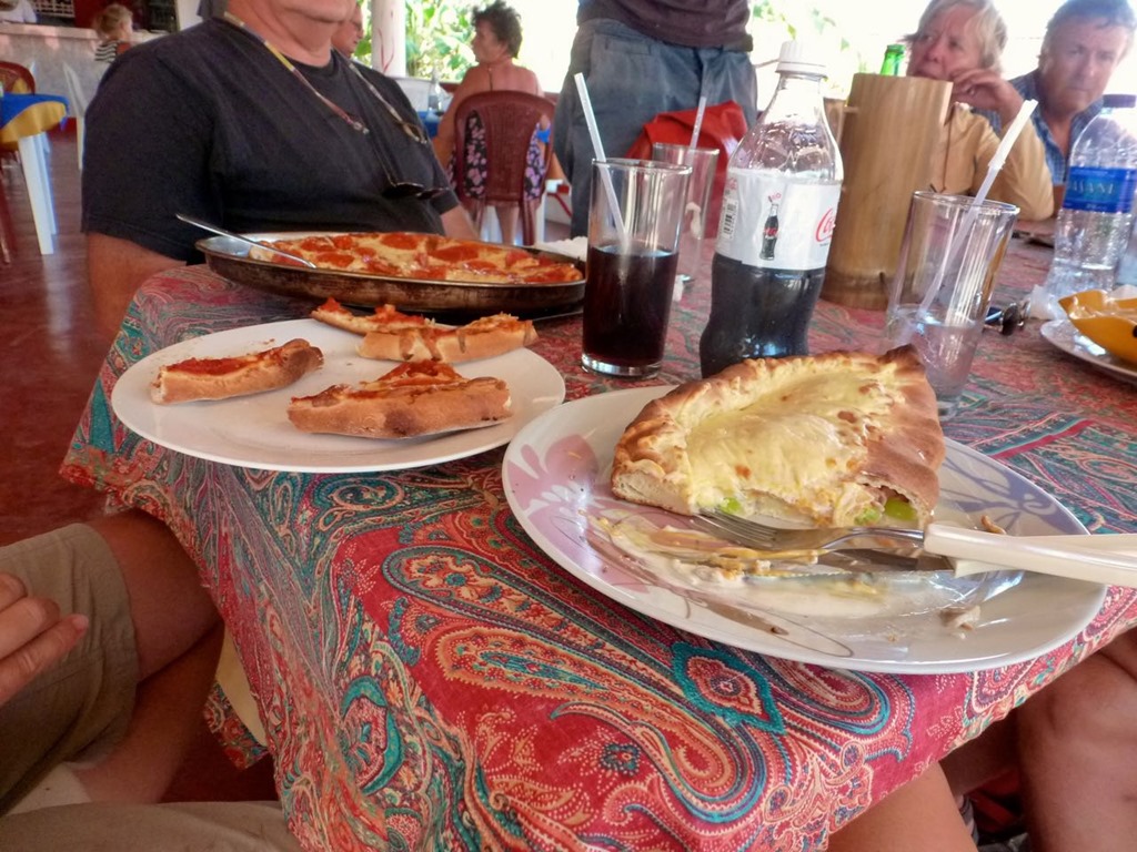 That night Mark took me out to eat a nice dinner. We saw Rod and Deb from s/v SiBella as soon as we got the dingy anchored; they offered us a ride in their rental car and joined us for dinner! I’m glad ‘cause it was a long walk, and would have been difficult in the dark. Ronald and Sandra showed up at the restaurant just as we were getting ready to leave.