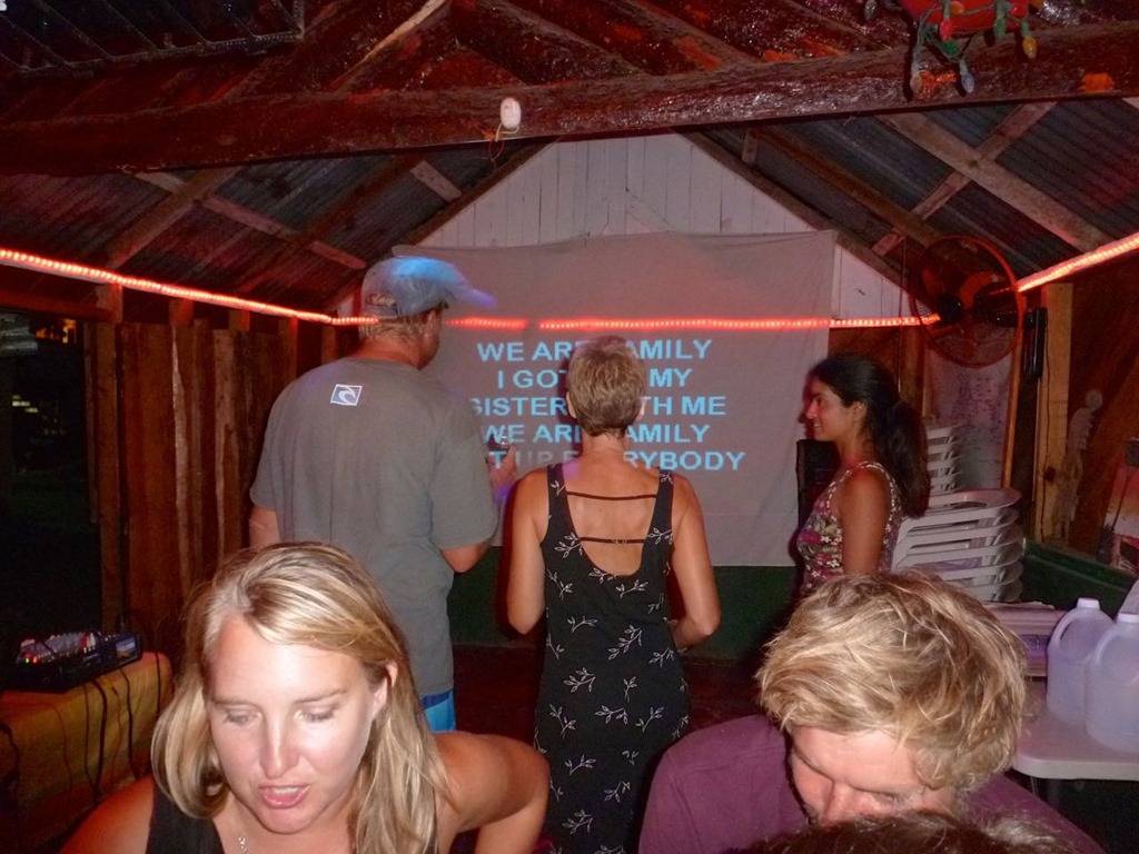 The night before we left, Mark and I joined a couple others of our group, s/v UNO, s/v Gypsy Spirit, s/v Raven, and s/v Island Hopper for karaoke night at Wendy’s, a local bar where the sign says: Gringos Welcome! The only time I’d ever done karaoke was at a Cedar Creek Bible Church ladies’ retreat and I was TERRIBLE! To tell the truth, I was really just hoping that there would be dancing at Wendy’s karaoke night! As expected, I was even worse at karaoke at Wendy’s than I was at the CCBC ladies’ retreat, especially since I chose a song that I realized pretty quickly I really only know the chorus to. It was still pretty fun to sing Sister Sledge’s “We Are Family” with Steve from UNO rounding out our little trio! As usual, Mark and I were the first to leave the party, and that was it for our time in Luperon!