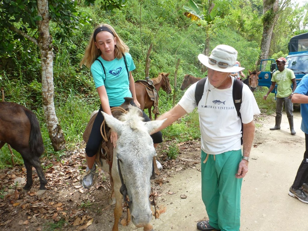 They had a wonderful time!! They rode past villages and waterfalls, stopping for a swim. In one village, they stopped to sample local foods, coffee and hot chocolate. Mark bought some coconut spread there. Others bought vanilla and chocolate. They galloped along a beach and stopped at a pavilion for a delicious lunch (I’m told). Mark bought some produce from a woman on the beach.