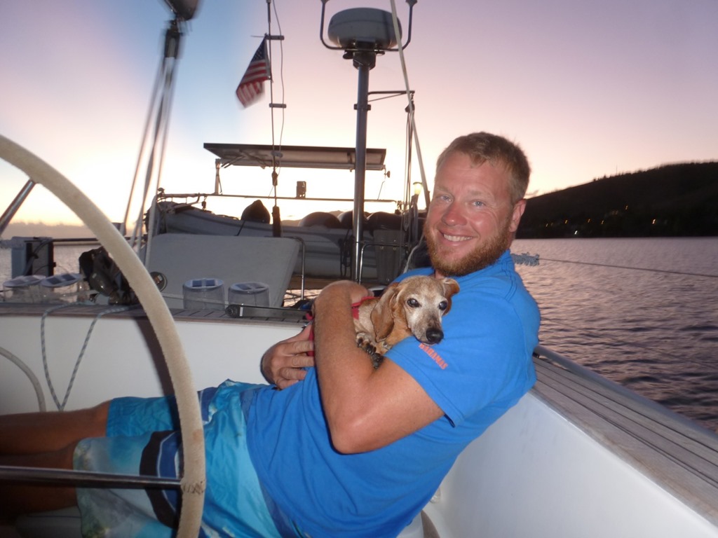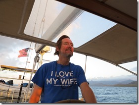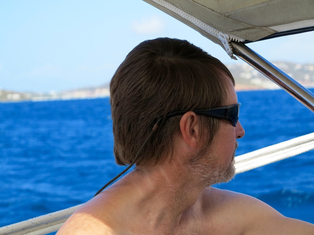 May 3 Christmas Cove, St. James Island, USVI to Cinnamon Bay, St. John, USVI; Pictured: WHOOHOO! On the way to St. John on our own boat…A dream come true for Mark!!