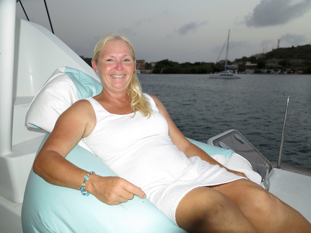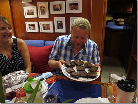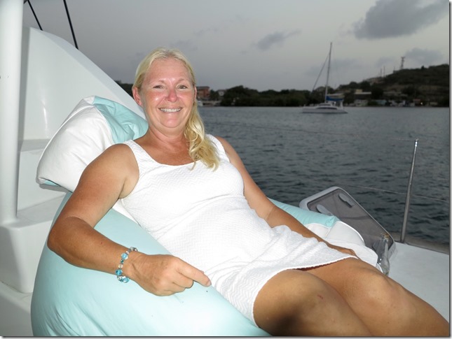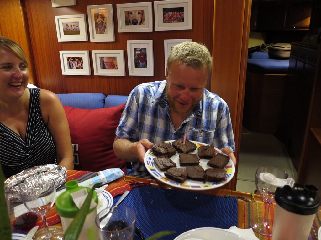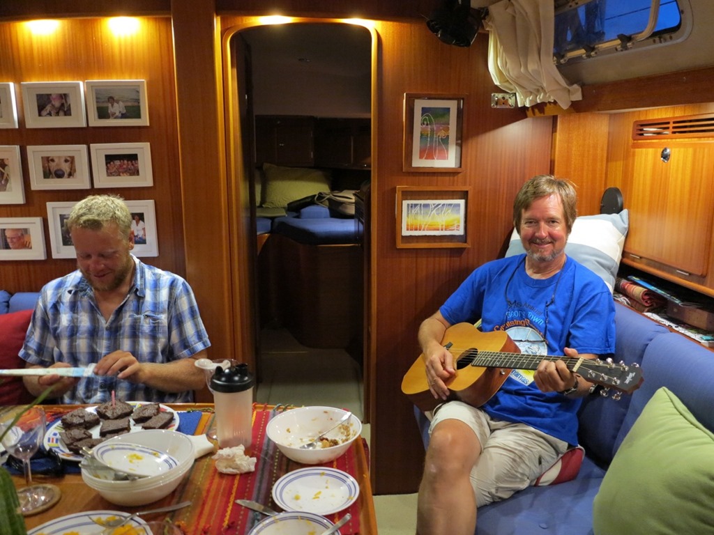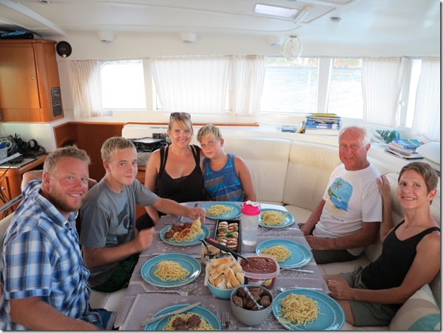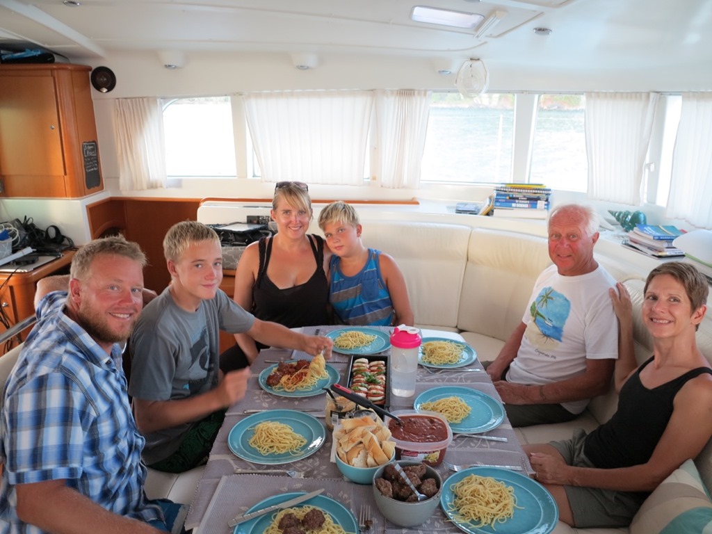 Sue treated us to a lovely spaghetti meal aboard s/v UNO while we were anchored together at Cayo Santiago, Puerto Rico.