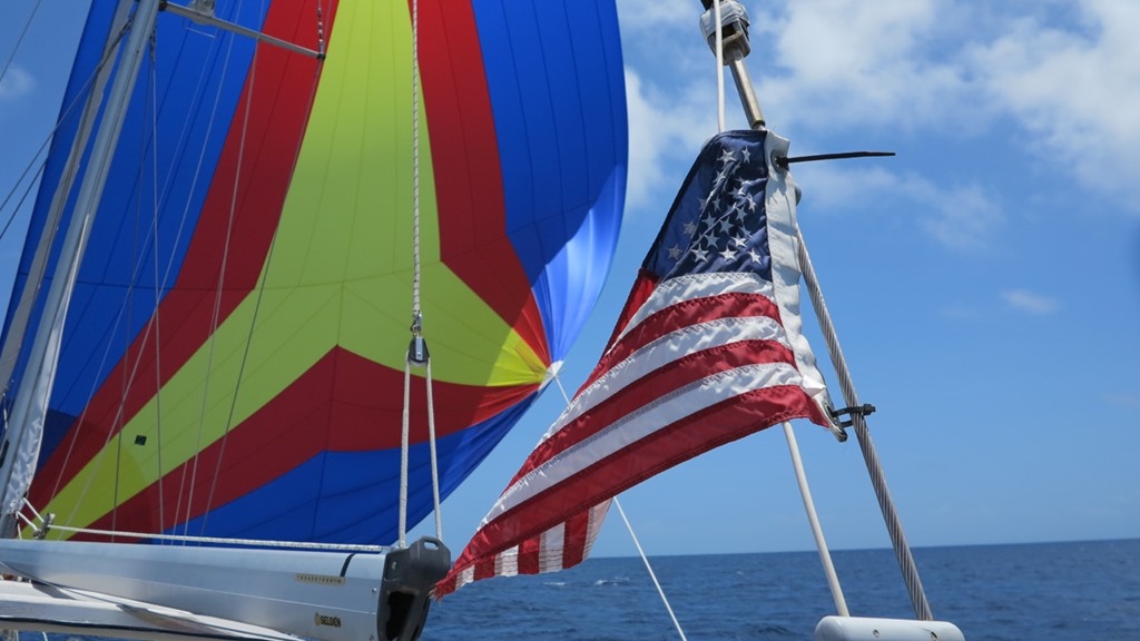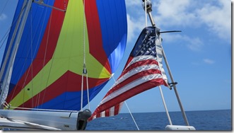 April 26 Sun Bay, Isla de Vieques SVI to Dewey, Isla de Culebra, SVI; Pictured: we had a nice down wind sail and flew our spinnaker!