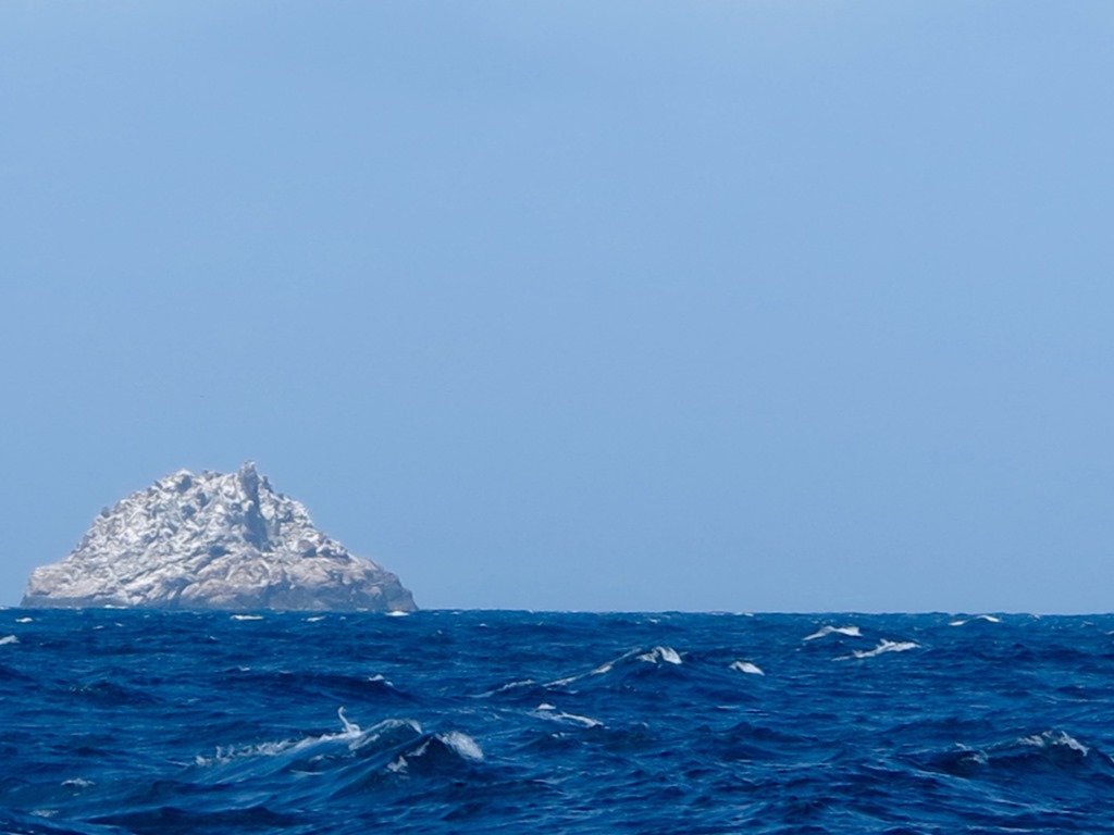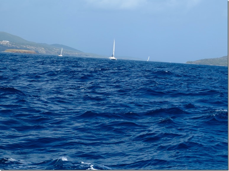April 30 Tortuga Beach, Isla Culebrita to Christmas Cove, St. James Island,USVI!!!!!; Pictured: sailing past Sail Rock