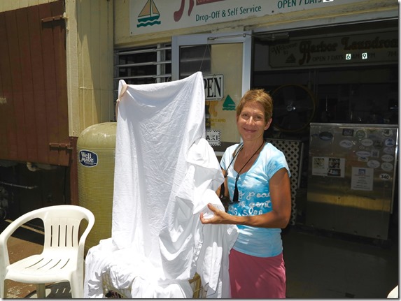 It’s nice to have someone else sharing in the “adventure” of laundry-day in yet another laundromat, with yet another bossy attendant, on yet another island, in yet another country! Mark and I dinghied over to Red Hook, St. Thomas, USVI from Christmas Cove and met Sue and Mary who were already there to do laundry one morning.