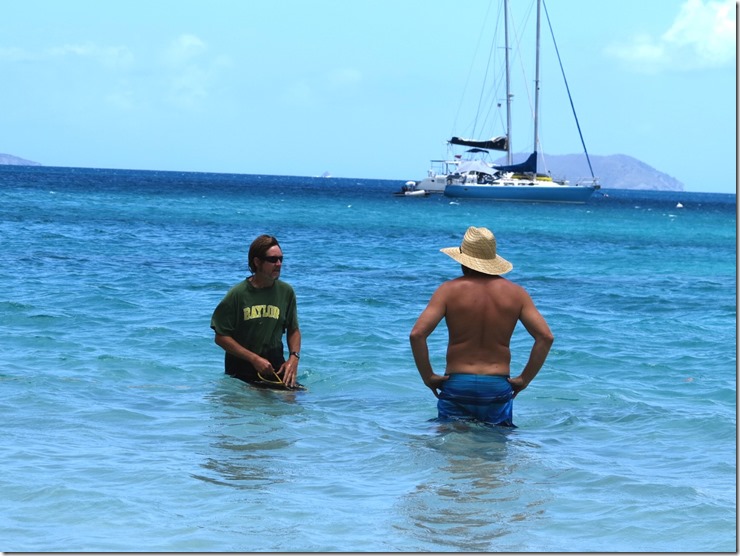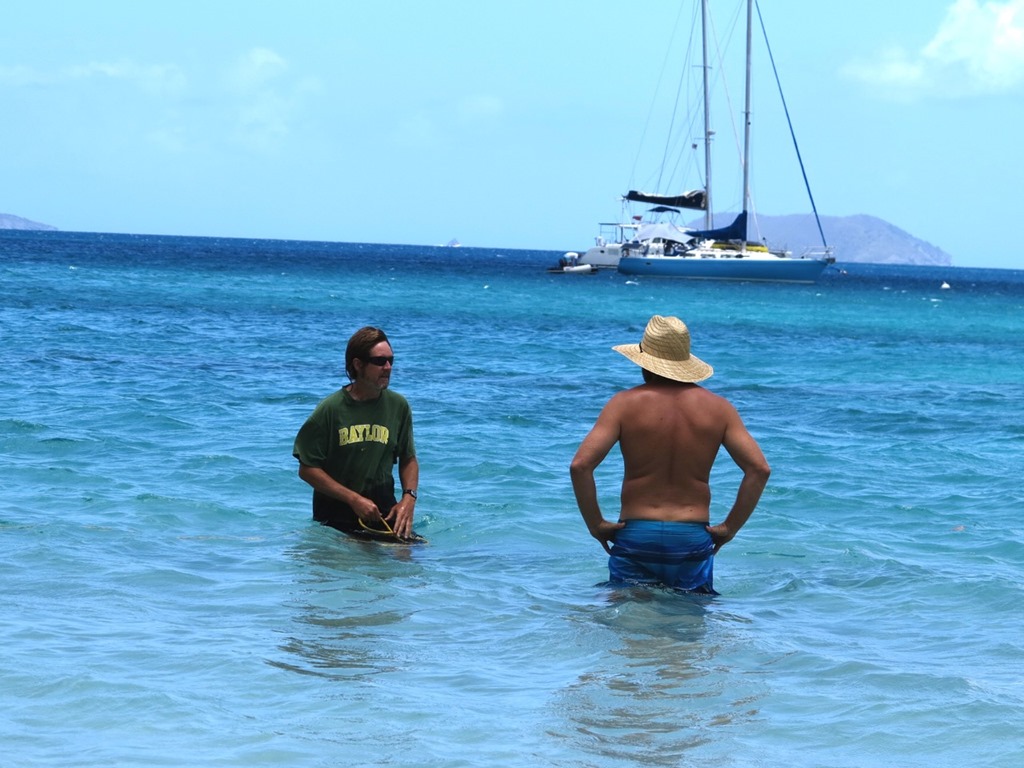 Mark and Steve at Cinnamon Bay, St. John USVI chatting in the water as Mark anchored the dinghy