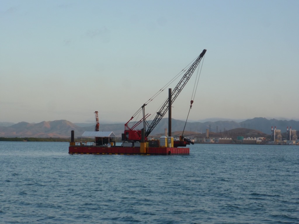 April 21 Cabo Infierno to Puerto Patillas; Early in the morning we left the anchorage sailing past this barge that creaked eerily during the night sounding as if there was a crew of ghosts working on it—