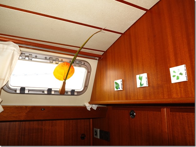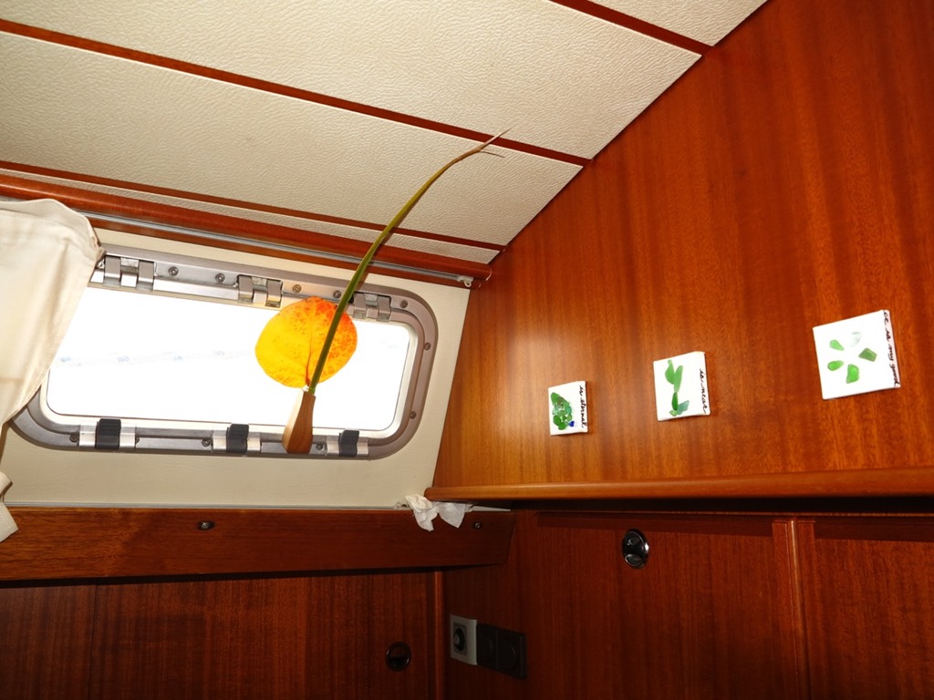 It’s been a long time since I’ve had anything in my little window-vase. I found this coconut palm leaf and beautiful yellow grape tree leaf on the ground when we went ashore from where we were anchored in Trellis Bay, Tortola, BVI.