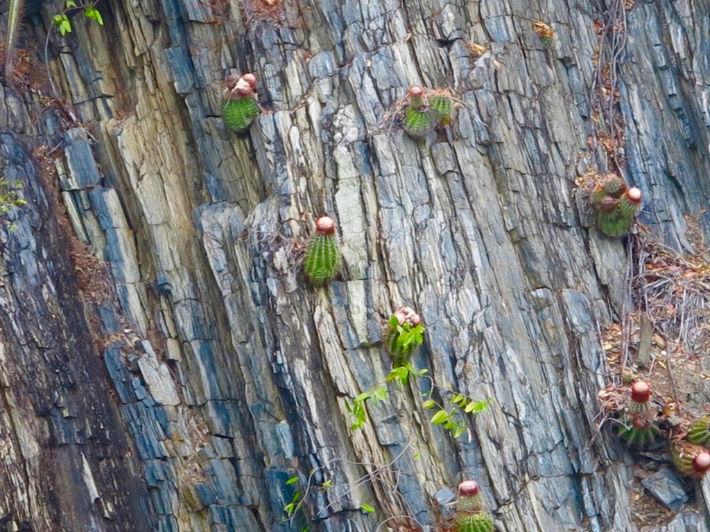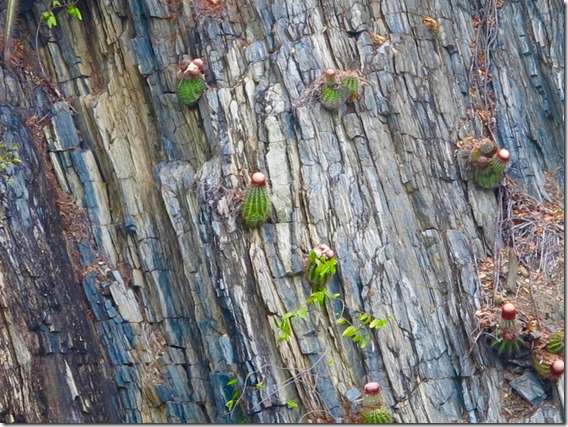 These are Turks Head cacti growing on a cliff face at Peter Island, BVI. BTW, the Turks of Turks & Caicos get their name from this kind of cactus.