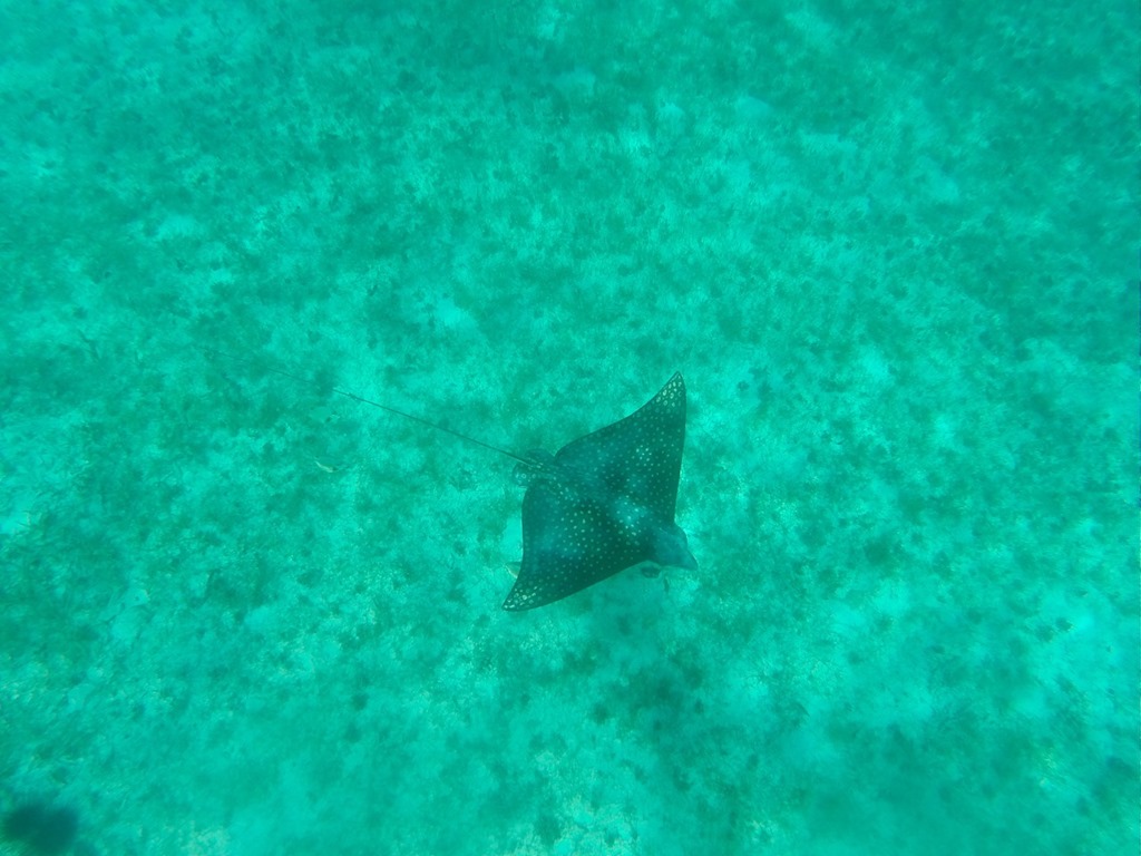 I was excited to introduce the girls to the turtles (Green Turtles) and Spotted Eagle Rays that I knew live here! We found them! There were actually 3 spotted eagle rays!