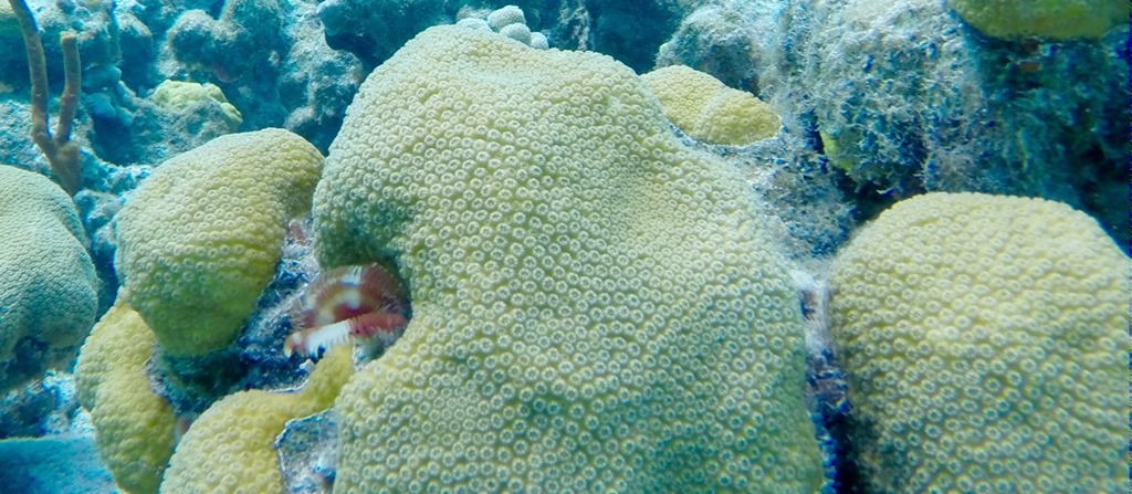 More star coral with some little Christmas Tree Tube Worms…I SO have the urge to wave my fin in front of them to watch them slurp themselves in