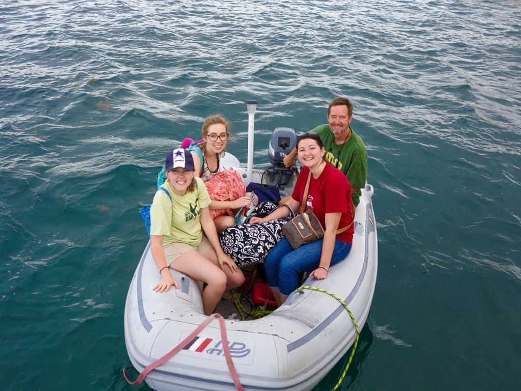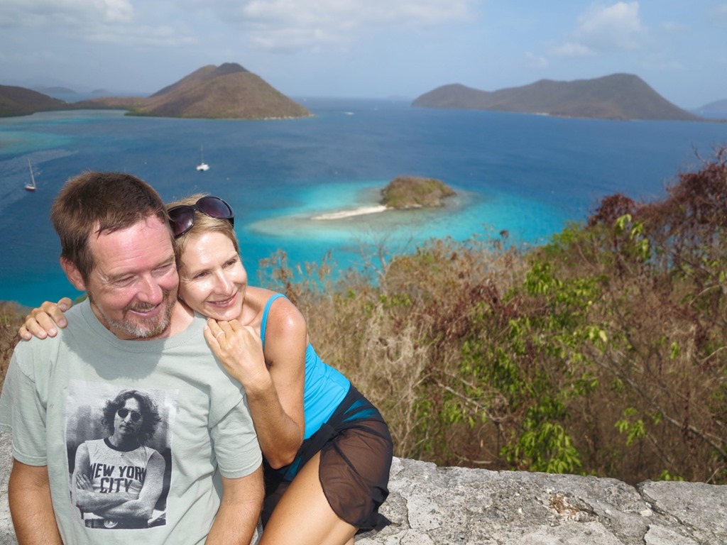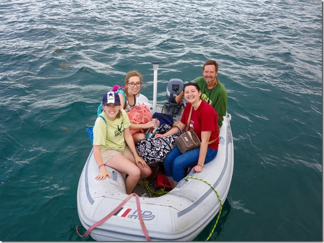 I was thrilled to greet them when they all arrived by dinghy late on a rainy afternoon. Thank goodness, that was the only rain we had to deal with the whole time they were with us other than showers in the middle of a few nights and once as a welcome refreshment on the way back down from a 2 mile, uphill hike on St. John. Back home in Texas was a different story—major flooding the whole week they were here!