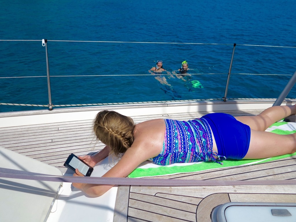 After lunch, Kay and Claire did a little more snorkeling off of Nancy Lu at her mooring…