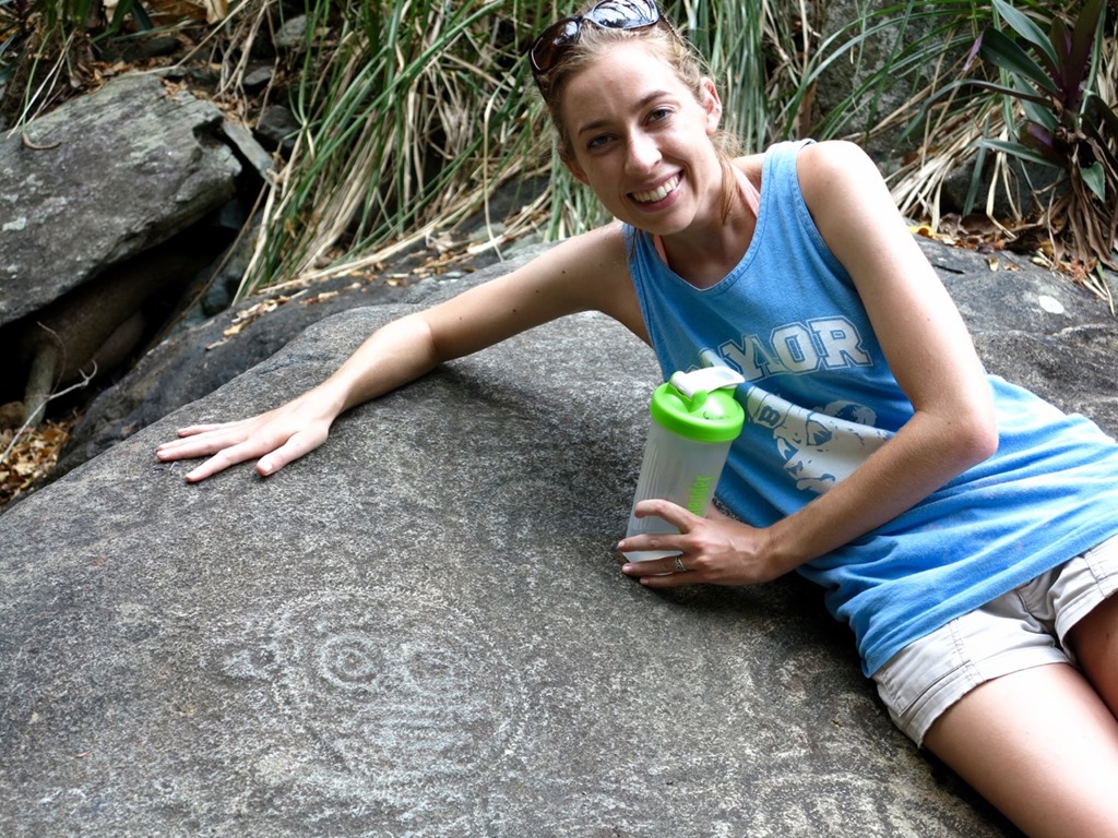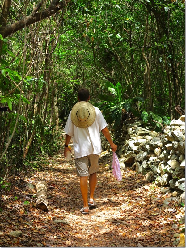 The next morning, we took a 2 mile hike up to the petraglyphs—pre-Columbian (as in Columbus) carvings in rock done by the Taino Indians. I had been looking forward to this hike; it is something that I enjoyed doing when we chartered years ago! There are old 18th or 19th century rock walls along the trails once used to terrace the hills for planting sugarcane and so many other interesting things to see!
