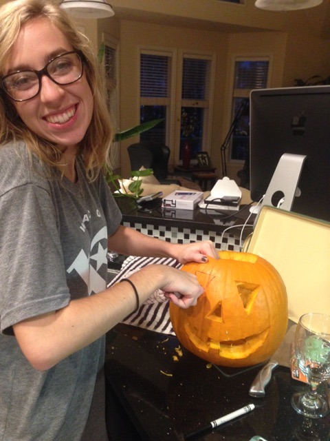 Claire was home on October 31st to help carve our pumpkin, Twofer, he was supposed to have three teeth, but his carver accidently carved off one of them