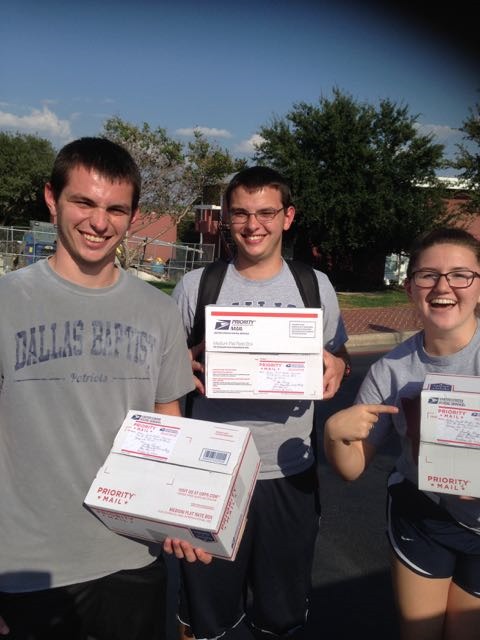 Another service opportunity through our church: In September, Mark hand delivered care packages put together by church members to these appreciative college students in Dallas.