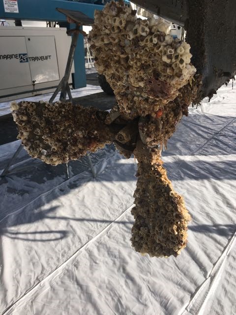 Mark had to get Nancy Lu towed to the boat yard where the bottom-paint job was done because the propeller was covered with growth and wouldn’t move. They had to treat it with acid to clean all that off.