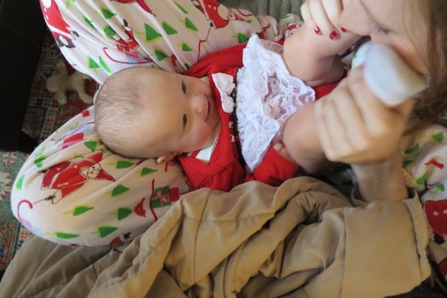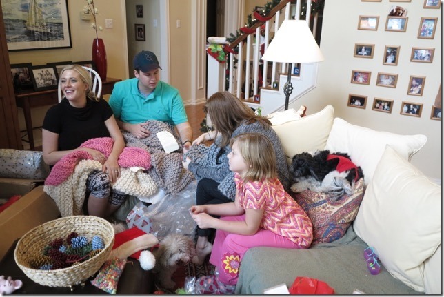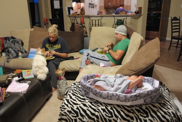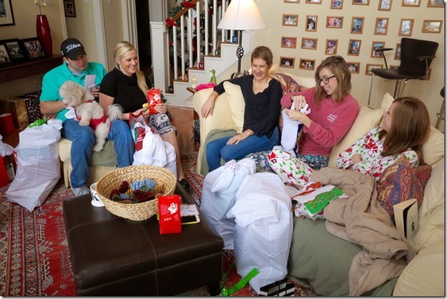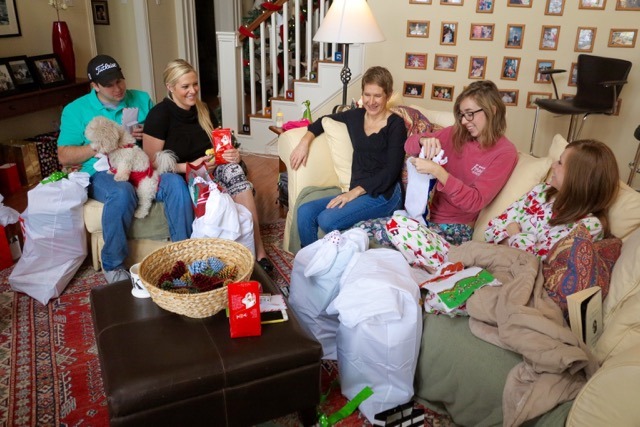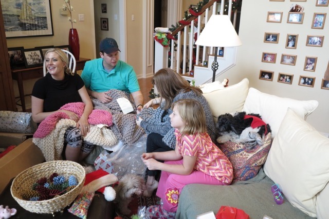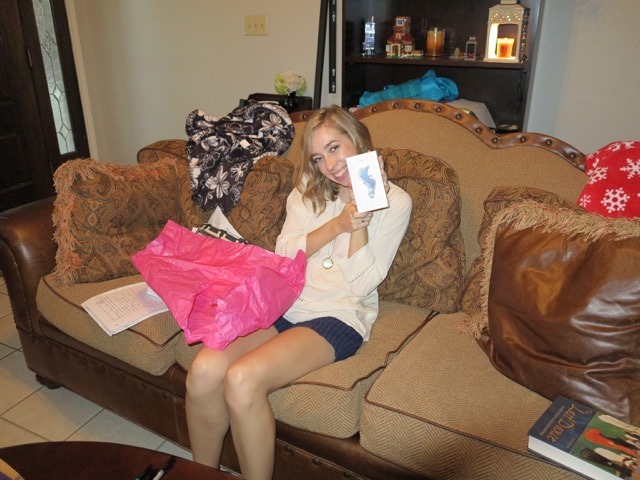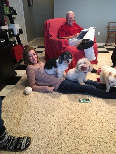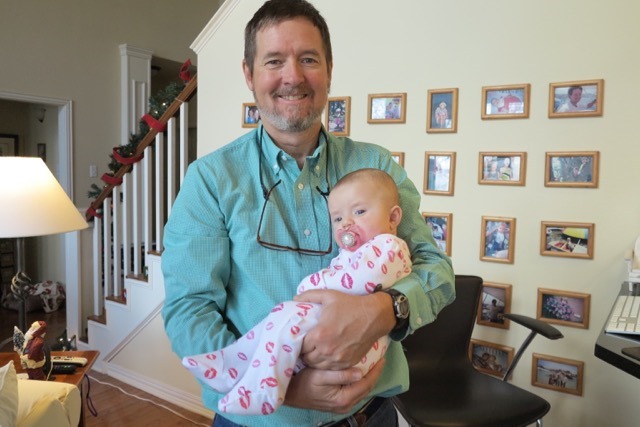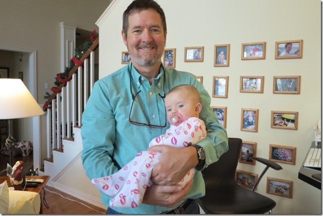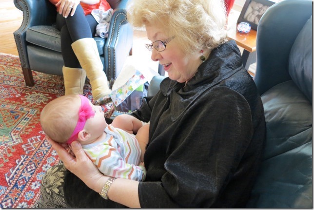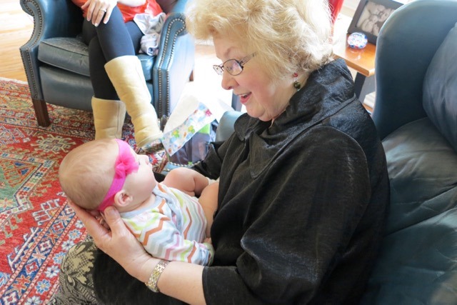 Christmas came to our house on December 26th so that Ethan and Kristin and our littlest family member, Baby Ava, could be with us. Mark, Amy, Claire, and I attended CCBCs Christmas Eve Communion, and on the 25th, we had lunch at the Movie Grill in Dallas and saw the new Star Wars movie—FUN! That night, Grandmom Nancy Rae and Granddad Larry got to our house in time for dinner. My brother and sister-in-law, Erin and their girls came on the 26th, as usual, and after much holding-Ava-time, brunch, opening-presents-time, and going-down-in-the-basement-because-of-tornado-warnings-time, we had our traditional Christmas dinner that night. Mama, Daddy, and Tim and the girls all stayed at our house until the 28th to avoid travel in the tornado weather, but we headed out on the 27th to attend Mark’s grandmother’s funeral on the 28th.