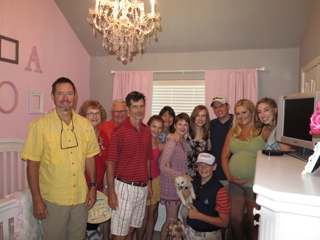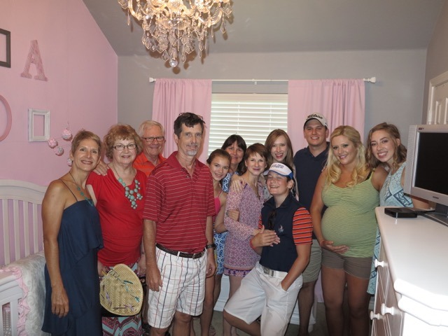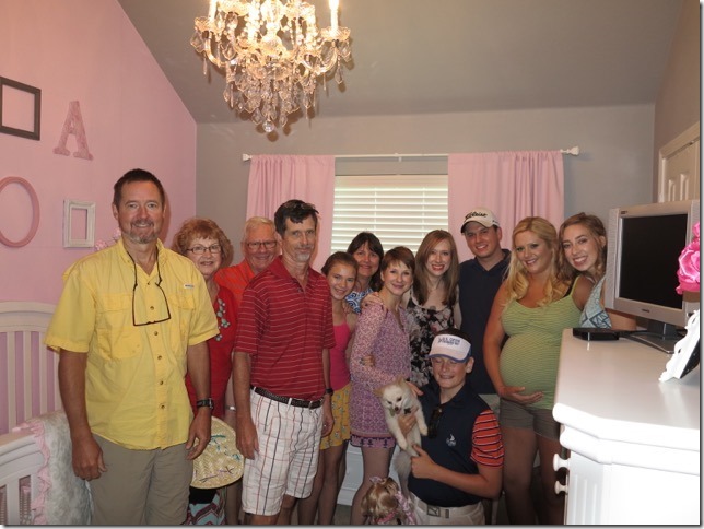Picture-time in Baby Ava’s beautiful nursery at our pre-baby shower get-together hosted by Kristin and Ethan at their house. Our family came from far and wide to celebrate, and we love them for it (well, we just love them, but are GRATEFUL to them for coming for the shower)!