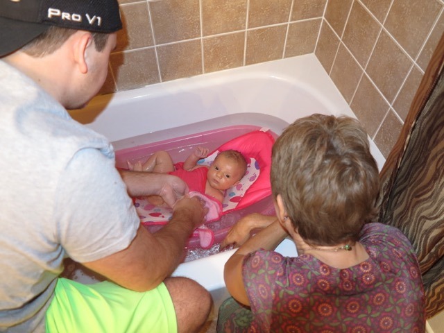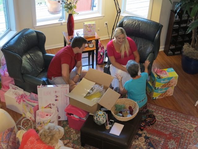 A baby shower given by Kristin’s friends in mid-July was a great opportunity for a fun, summertime, family get-together at our house with Amy, Jenny (my sister) and her kids, Alan and Judy, and Mama and Daddy.