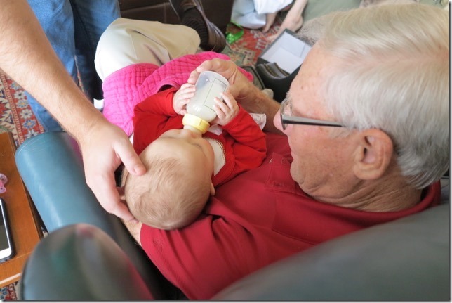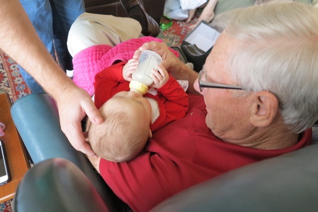 We hosted a pre-Thanksgiving get-together on November 15! Great-Grandmom Nancy Rae, Great-Granddad Larry, and our dear friend, Kenny got to hold Baby Ava for the first time!