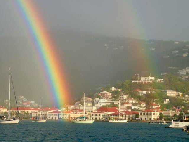 Charlotte Amalie, St. Thomas (yes, the double rainbow really looked like that!) for one night where we were able to share breakfast with Chuck and Micki! They have become treasured family-in-Christ encouraging us and truly sharing in some of our burdens. God is faithful! After a one night stay at St. John where we enjoyed lunch with S/V Sandra Louise,