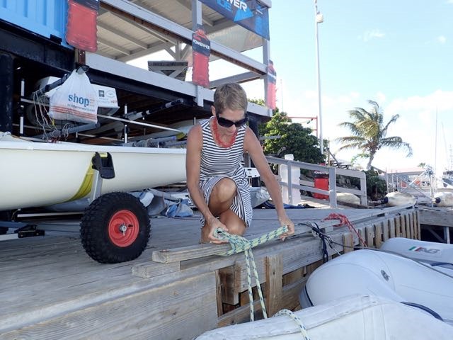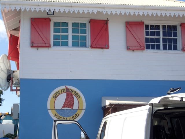 We tied our dinghy up at the dock at the Sint Maarten Yacht Club.