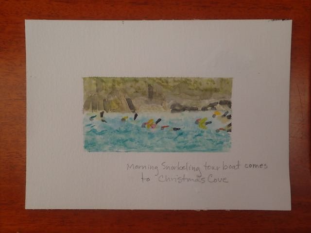 I decided to read your blog as fast as I could like your trip and so then I had to go back through it twice to get it all like you will do to see all of the islands…😀😀. The “leeward” and “windward” islands always confuses me too. Still seems confusing but a bit clearer. I hope you keep the labels so we can try to keep them straight as you zig zag around. And the final confusion😊…I thought Catholics and Christians were enough different to not be the same…much you will learn between the two I gather. Studies go down better with the smoothly from the NutriBullet. I see the commercial every week on Spanish cartoons. That’s what they say too! Love the snorkelers water painting. A sweet dappled style and humor, like sun sparkling on the early morning water. C