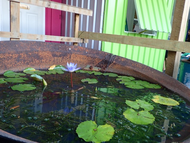 Pretty lily in a “container pond” at the “container park”