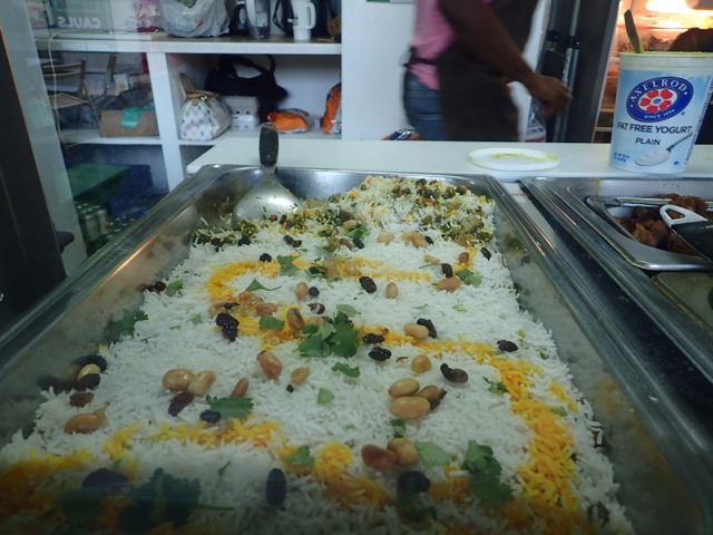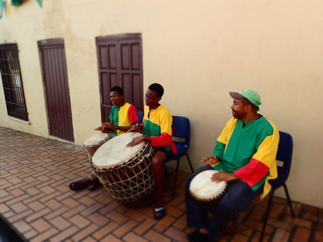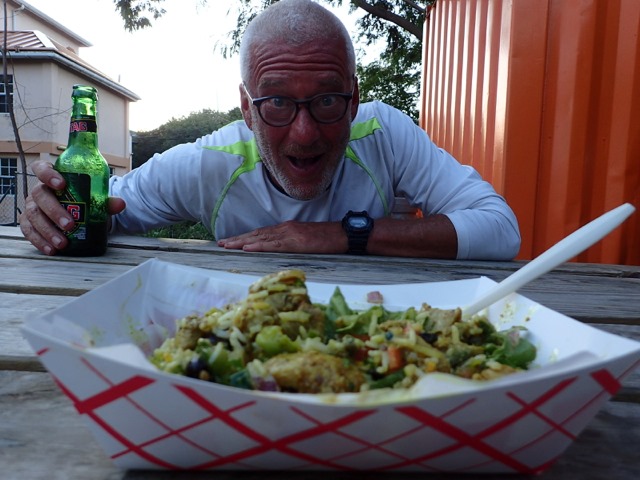 Let me explain “Shademan”.  “Shademan”, Patrick, is an integral part of “Camp Grenada”.  He’s a bus driver that sort of specializes in servicing cruisers in the southern anchorages of Grenada.  There are a couple of others that do the same, but “Shademan” is whom we’ve dealt with the most.  He comes on the VHF “net” every morning during the local business section, asks if anyone is celebrating a birthday or anniversary that day, and gives them his well wishes.  He then tells about all the places and events, for that day, that he could take someone to celebrate, and tells what the fee would be.  If anyone wants to take advantage of the ride he’s offering (whether it’s their birthday or not), they wait until after the “net” and give him a call on the radio or phone.  His hope is to get a full bus, and he usually does.  So Shademan’s weekly Friday evening destination, the “container park”, is like a collection of food trucks in the USA.  It is close to St. George’s University, and lots of students hang out there on Friday nights.  There is food of every “denomination”, as Shademan advertises(Open-mouthed smilethat word choice always made me giggle)!  Each container (like you would find on a cargo ship or train) specializes in something different.  I had an Indian chicken curry and rice dish that was scrumptious from one container, a smoothie from another, AND coffee from another!