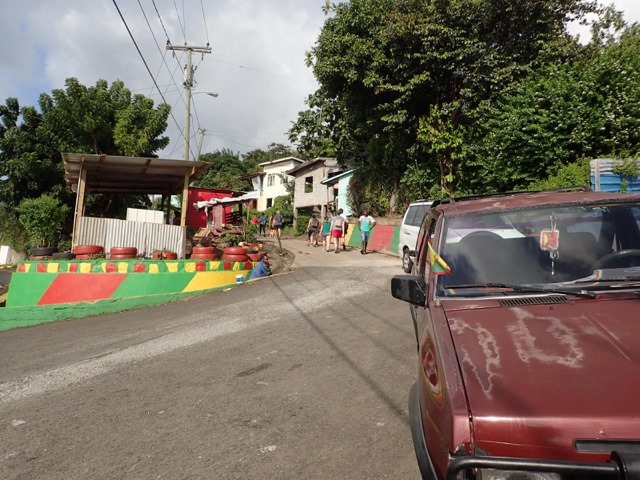 We came out on a main road painted with Grenada pride.  My t-shirt color supports the NNP as does the graffiti on this wall.