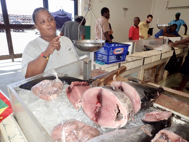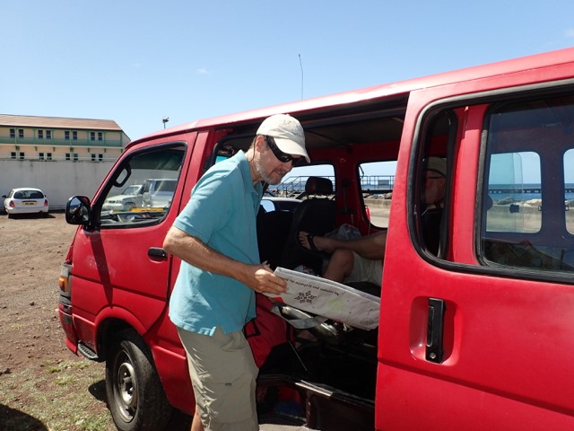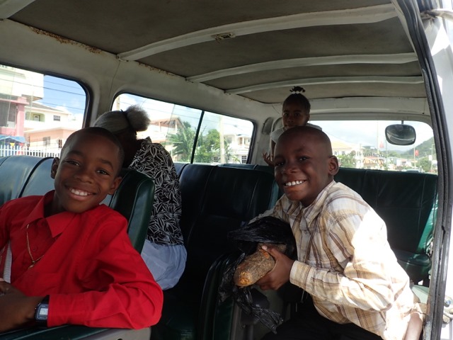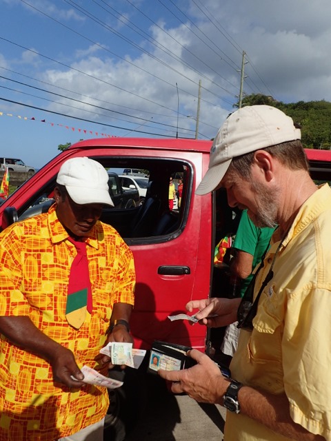 A big part of being at “Camp Grenada” is the shopping bus.  I’ve written about catching buses to take you shopping or wherever you want to go.  These run all the time and are very much appreciated, but they can take a long time because of the many stops they make to let people on and off.  You also need to know which ones go where, and none of them pick up at Secret Harbour, where we were.  This means an inconvenient dinghy ride or a walk to where they pick up, sooooo… “Shademan was at our service” again, with the flat fee shopping bus for cruisers!!!  There are other’s who provide this service.  Different days mean different stores and different combinations of stores including Island Water World, the hardware store, the grocery store, the downtown market, CK’s (Grenada’s Costco on a MUCH smaller scale), etc.  It’s usually a 2 or 3 hour trip, and very convenient.