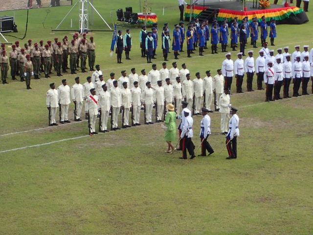 There was much pomp and circumstance!  The Governor General (The British representative to the government-Grenada is a British Commonwealth) was invited to inspect the military groups.  We watched as she walked by each group.  She reminded me of Queen Elizabeth II, herself!