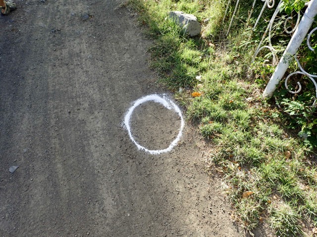 This time, the trail was marked with flour.  A circle means you have to choose from two trails, with one of them being false.  There are words that you can yell to other hashers that are ahead of you on the trail (I can’t remember what).  If they yell back, “On on!”, that means to follow, but “On back!” means take the other trail.  There are other “obstacles” that I can’t remember, but it makes for a fun time!