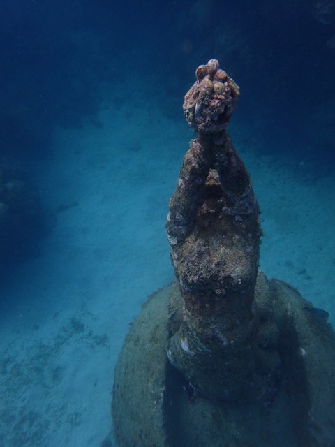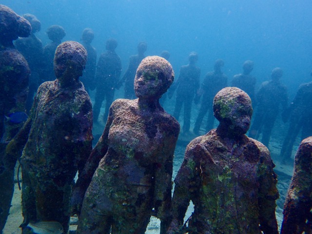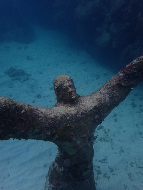 Aren’t they Awesome.  I didn’t even find them all.  The above photo shows three of 16 statues cast from a local Grenadian woman.  They were intended to be lying down on the sea floor.  They were the first statues installed in 2006.  They’re called “Grace Reef”.  I think it’s eerily beautiful.