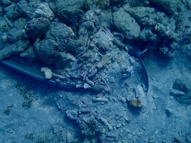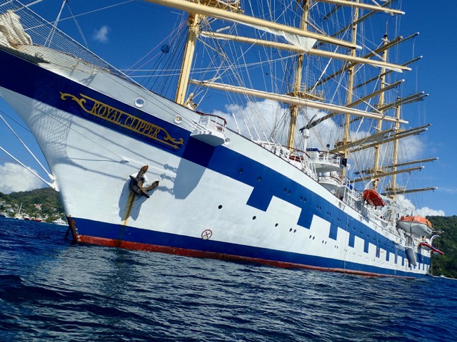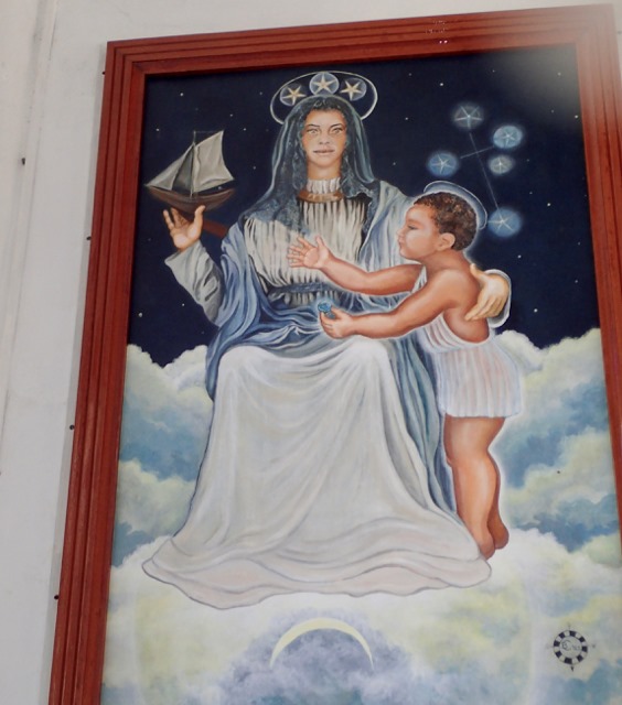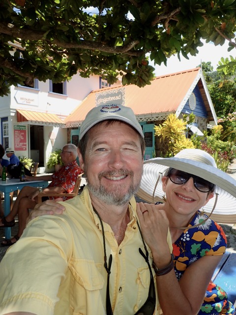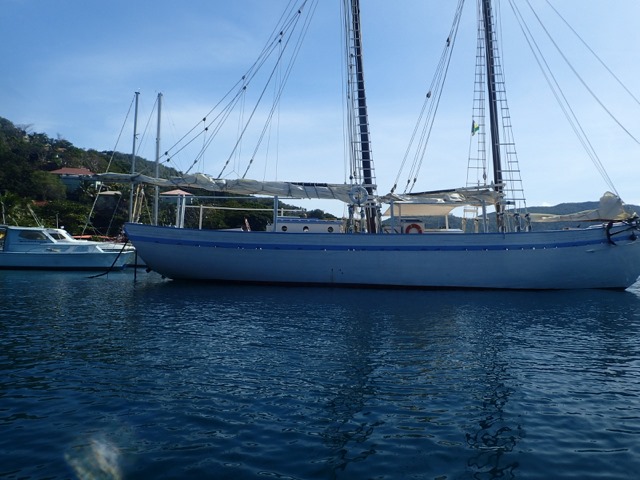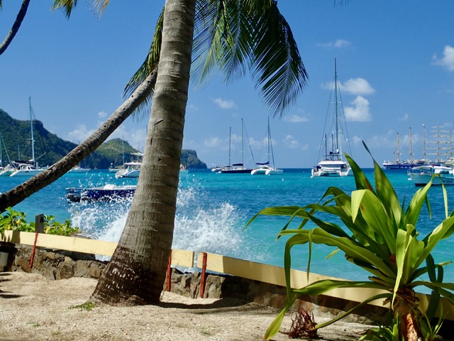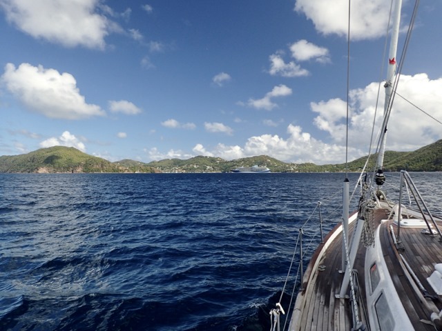 I usually dive to get a look at how our anchor is set. It held great during a big west wind blow that came up one night. We had just sat down with a big bowl of freshly popped corn and a movie when the blow came through. We felt like we were sailing on a close reach, bashing through waves, in 35 knots of wind for about an hour. We were awakened in the middle of the night when we lost ALL wind, but were left with the surge rolling into the bay. This makes the boat rock dramatically from side to side when the boat swings sideways to them—not comfortable. Two of our buddy boats left and went on to Martinique. One of them was anchored close to shore, and were warned by locals that they would end up on the beach if they stayed through the storm. The other boat was planning on leaving early the next morning anyway, so rather than roll all night without going anywhere, they just got underway. We stayed since we were waiting for our sail to get finished. It wasn’t bad after we got some wind in the anchorage to keep the boats facing straight into the swells.
