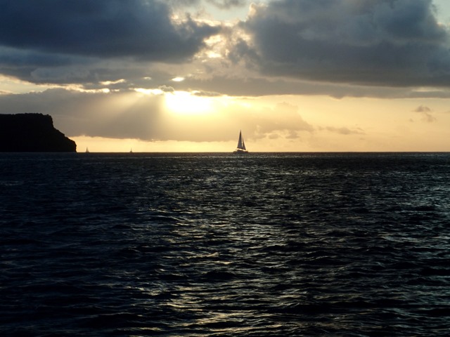 We got anchored in Admiralty Bay, tidied up, washed the salt off the bright work and wind shields, and just enjoyed this new anchorage and its sun set!