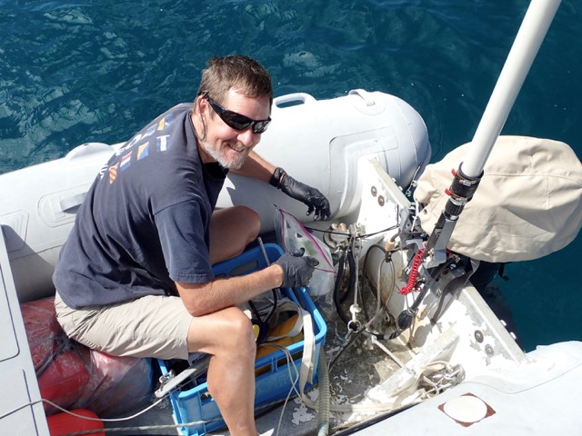 So after we got the sail down (we used it to sail from Carriacou), Mark changed the fuel/water separator on the dinghy motor,