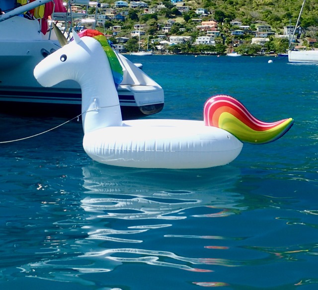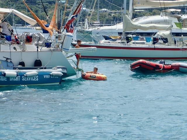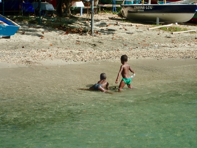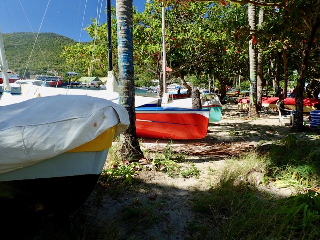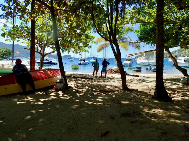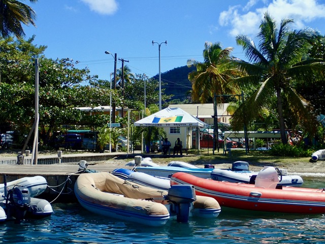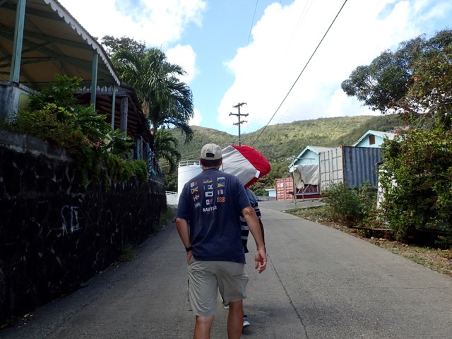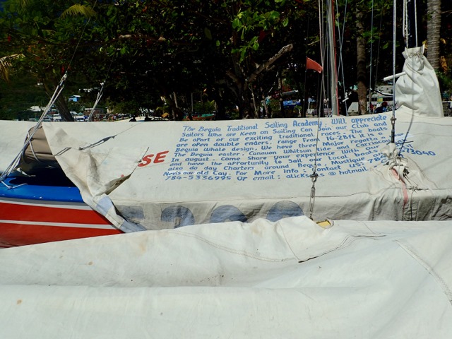 A townsperson made a couple of bucks by carrying the heavy sail to the shop. Guys wanting to help with things at Port Elizabeth’s town dock is a common practice in Bequia. We haven’t found the guys doing this to be pushy, well maybe pushy, but not intimidating, so we’re happy to use their services from time to time.