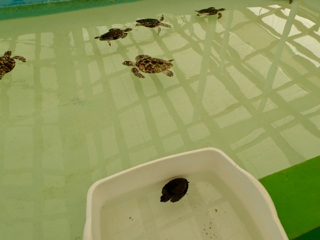 I’m not sure how ecologically sound the turtle sanctuary is, but it was fun to see the babies. This place got it’s start because the founder, a retired man, would go out and collect eggs, hatch them, and keep them at the sanctuary until they had a better chance of making it in the wild (6 or 7 years old). That’s pretty much what still takes place. He’s kept a few turtles well past the juvenile stage, one or two because of deformities, others…’cause he likes them?