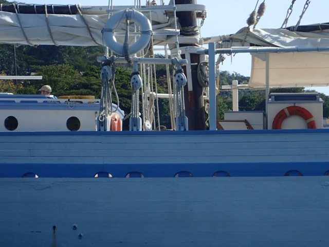 We saw a familiar sailboat (with a new paint job and some other modifications) moored in Admiralty Bay —Exodus! In Grenada, we saw the documentary, Vanishing Sail, about the building of THIS wooden boat. It was the last boat built by Alwyn Enoe and his sons in Carriacou, using the traditional tools and methods, from making a small wooden model to work from, to chopping down the trees and dragging them to the building site, to caulking with cotton, to building with hand tools, to launching by rolling the boat into the water on logs! Someone has since bought this special boat after it came in 3rd place behind Zemi and Genesis, also built by Alwyn Enoe, in the 2013 Antiqua Classic Yacht Regatta—Traditional Class A! If you’re as fascinated by the story behind this boat and the people associated with her as I am, you can learn a little more here!