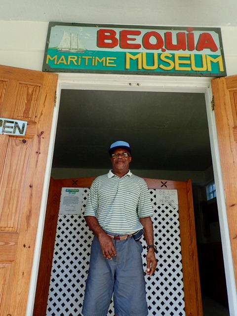 On our last day in Bequia, I visited the Bequia Maritime Museum run by this unassuming old gentleman, Lawson Sargeant. It seems that this man who is famous in Bequia for his exemplary model boat building, has had a stroke, but he still takes you around and painstakingly shows you every exhibit and answers questions. This visit pulled at my heartstrings and was very educational, adding to my already great appreciation for artisans and skilled workers of these Caribbean islands and our elderly population, in general (Okay, I’ve swallowed the lump in my throat.). One of the exhibits is a framed photograph of Mr. Sargeant, in his younger days, presenting a scaled model of HMS Brittania, which he hand crafted, as a gift to Queen Elizabeth II when she visited The Grenadines back in the day! Prince Phillip is pictured close by in the background. From what I understand, the model is still displayed in the Royal Yacht Club in England. The Queen sent a thank you letter to the Prime Minister of St. Vincent and the Grenadines (which Bequia is a part) which mentions Mr. Sargeant personally! The letter is exhibited in his museum, as well!