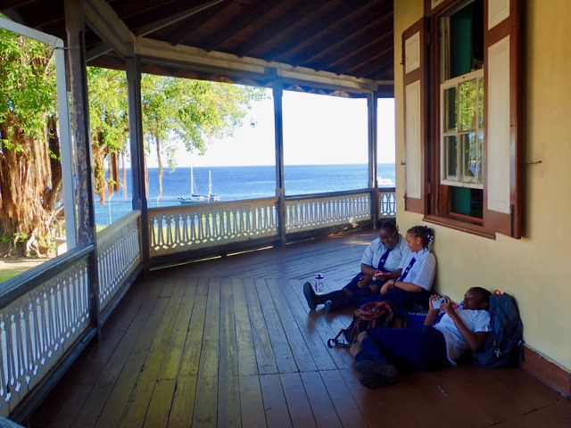 We visited the library before we headed back to The Loft where our dinghies were tied. These school girls were hanging out on the breezy library porch after school. It was a comfortable place to be!