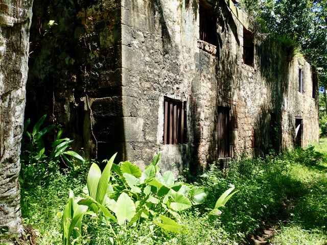 Our first stop was a ruin of a rum distillery. Seeing this old distillery in ruins made me appreciate, all the more, Rivers Rum Distillery. from the same era and still in use!